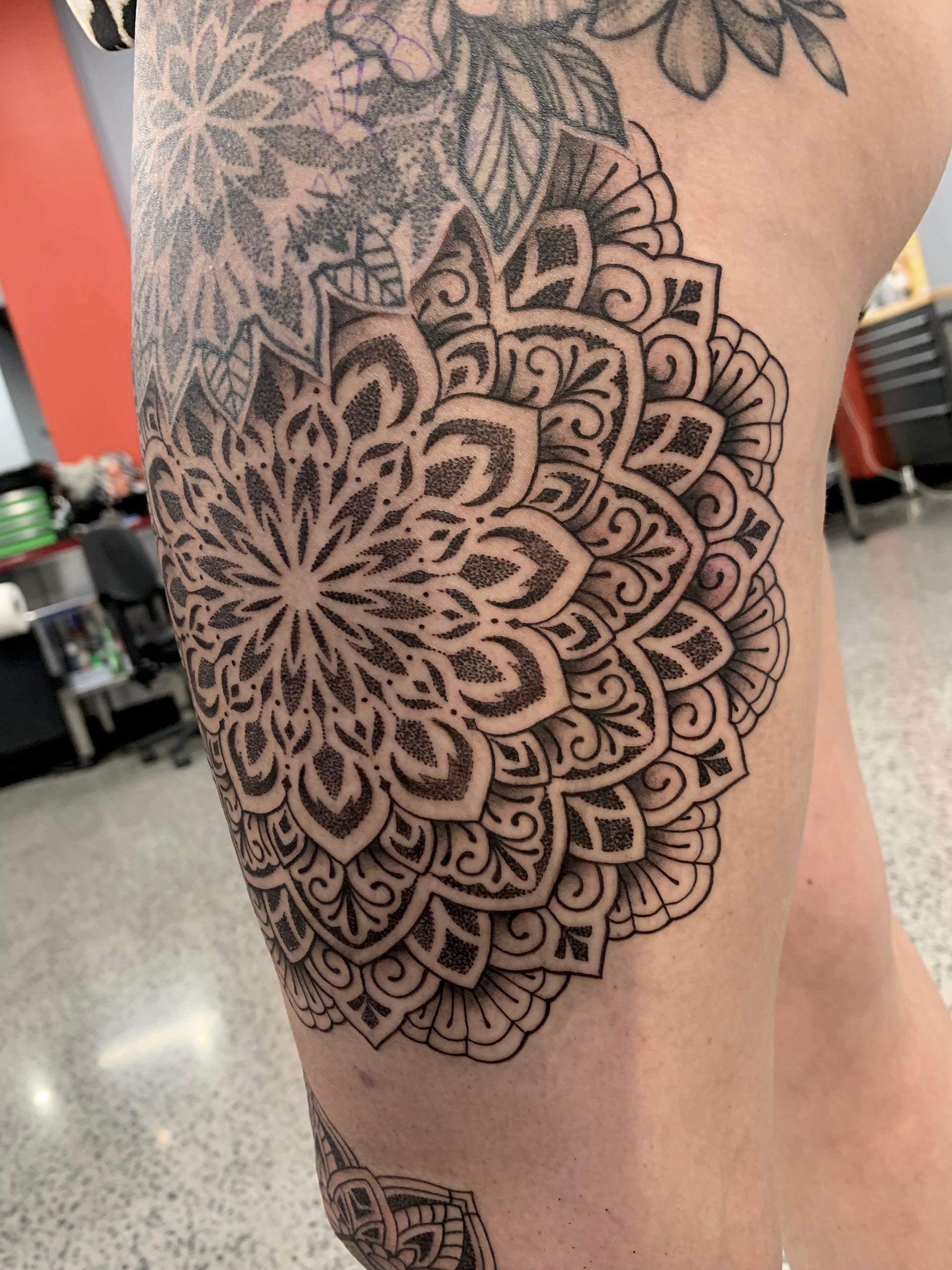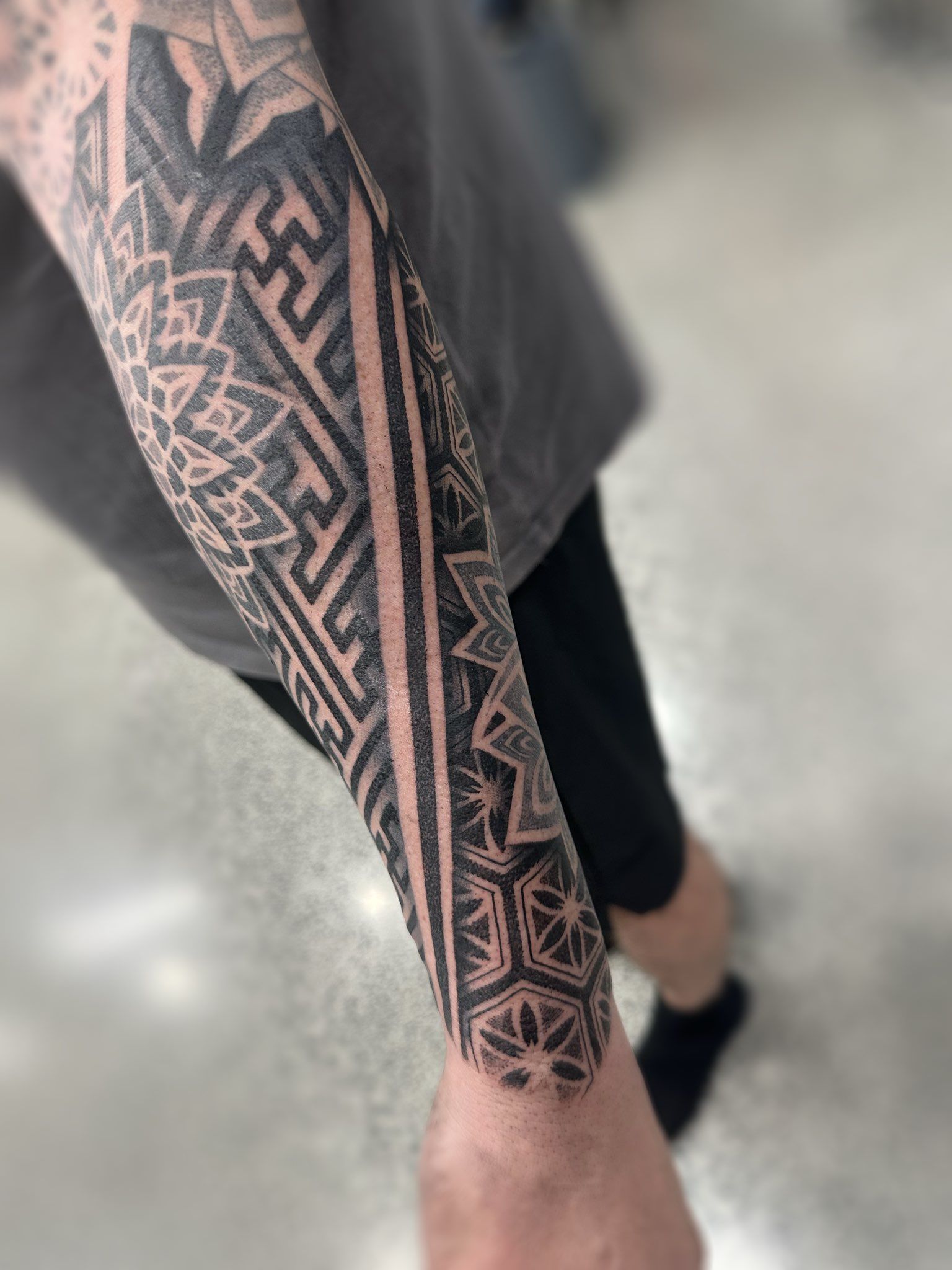 With more than 25 years of meticulous dedication to his craft, Wayne possesses an innate eye for detail that distinguishes his work. Specialising in geometric designs, mandalas, blackwork, and fine line tattoos, Wayne's expertise spans a diverse array of styles, with each tattoo meticulously crafted to perfection.